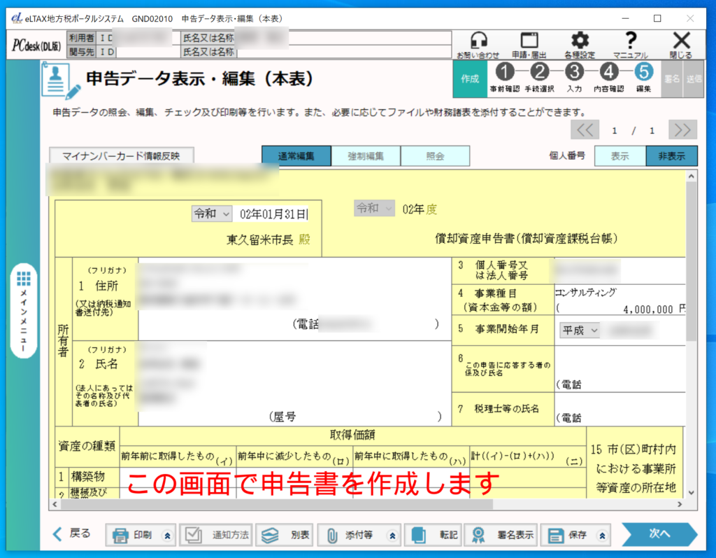 ここでは、償却資産が存在しない、または変更がない場合に、eL-tax(インストール版)を使用し、簡単に申告する方法を紹介しています。