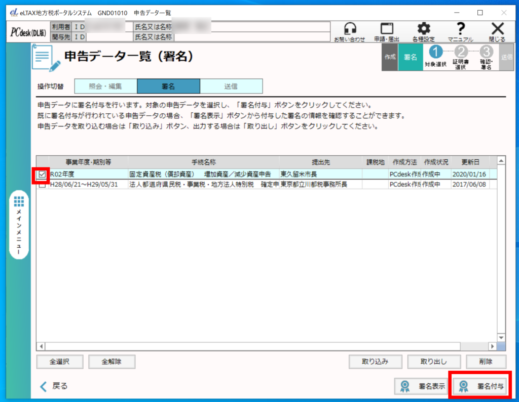 2.電子署名と申告書の送信