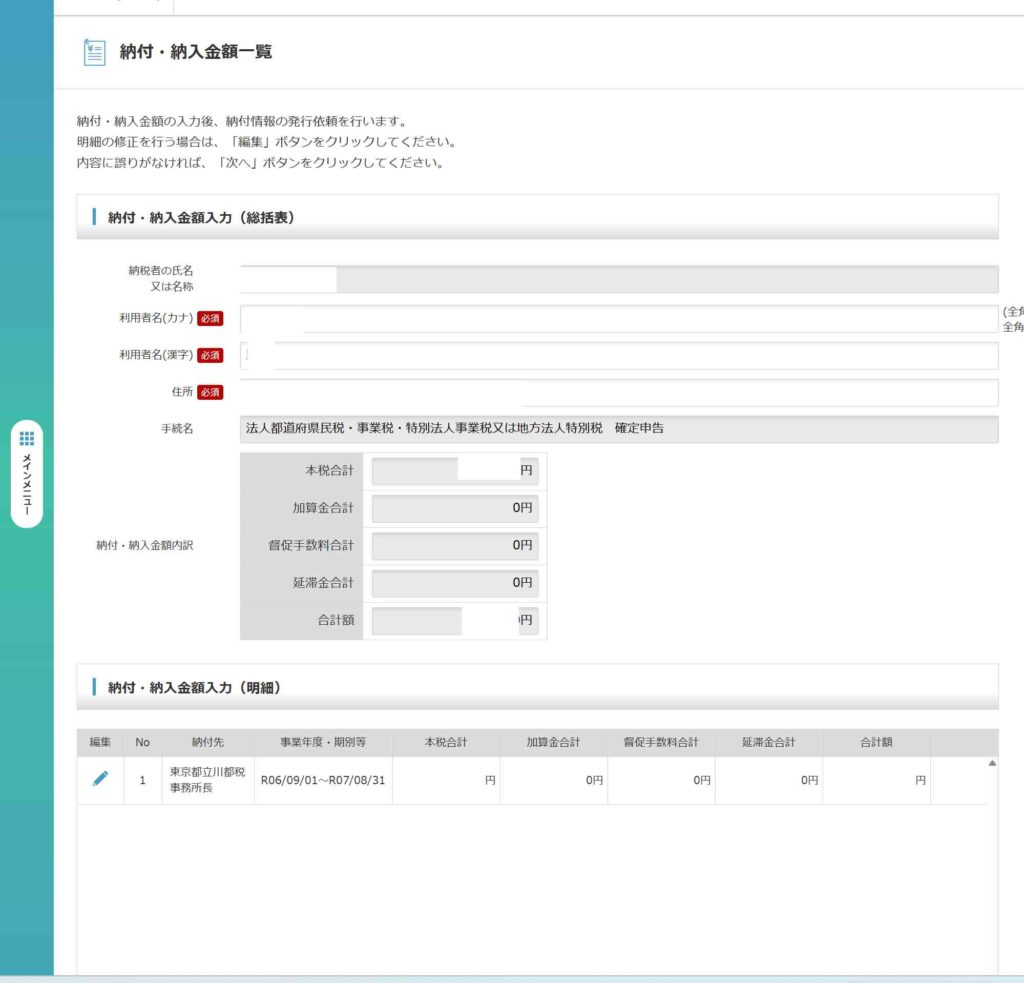 その後、実際の納付作業を行います。
