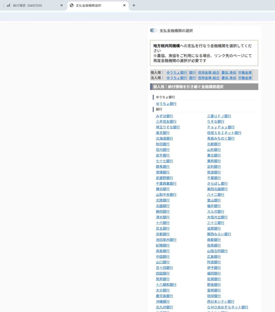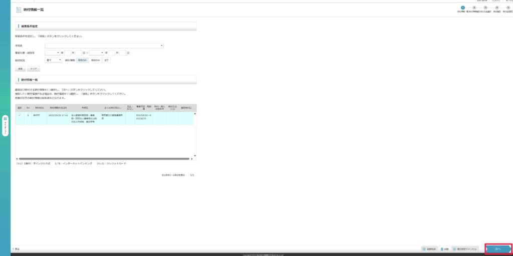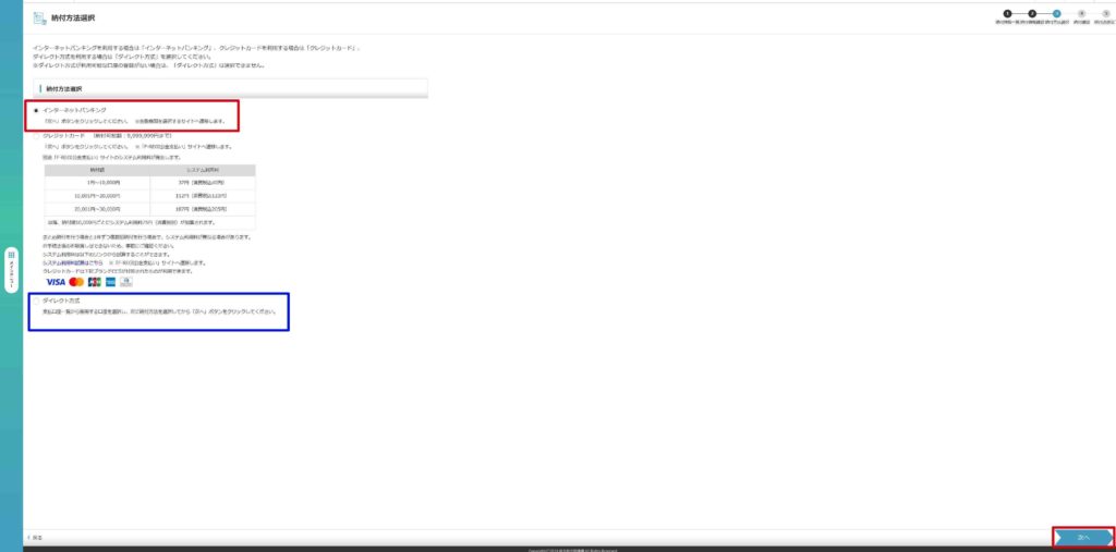 ここからは納付手続きになります。