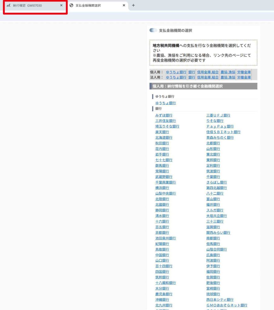 タブを切り替えることでeL-taxに戻ることができます。