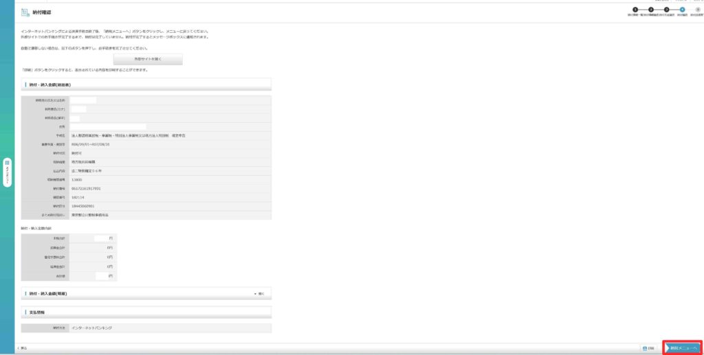 このような画面に遷移したら、右下の「納税メニューへ」を押下します。