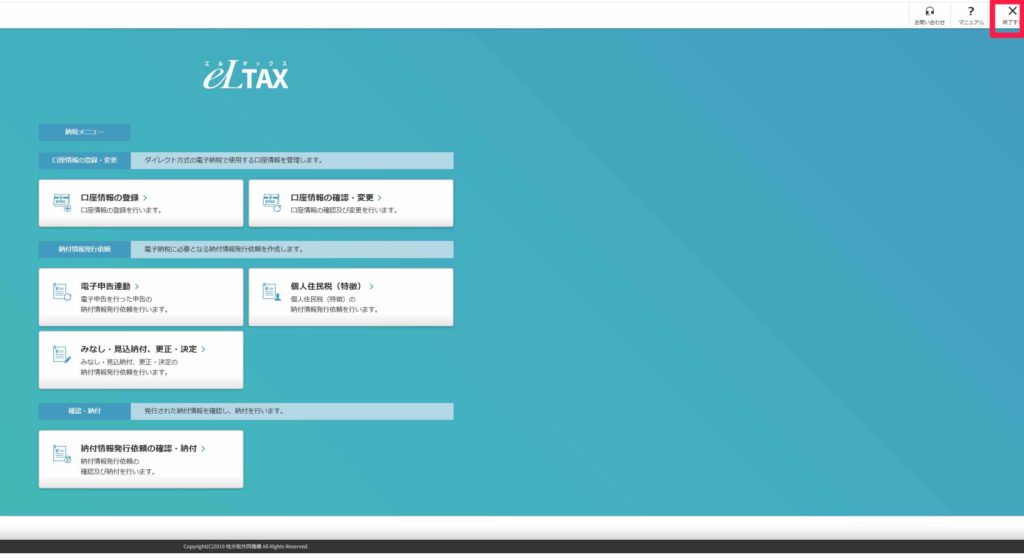 ここからはeL-taxからログアウトする手順をご案内します。